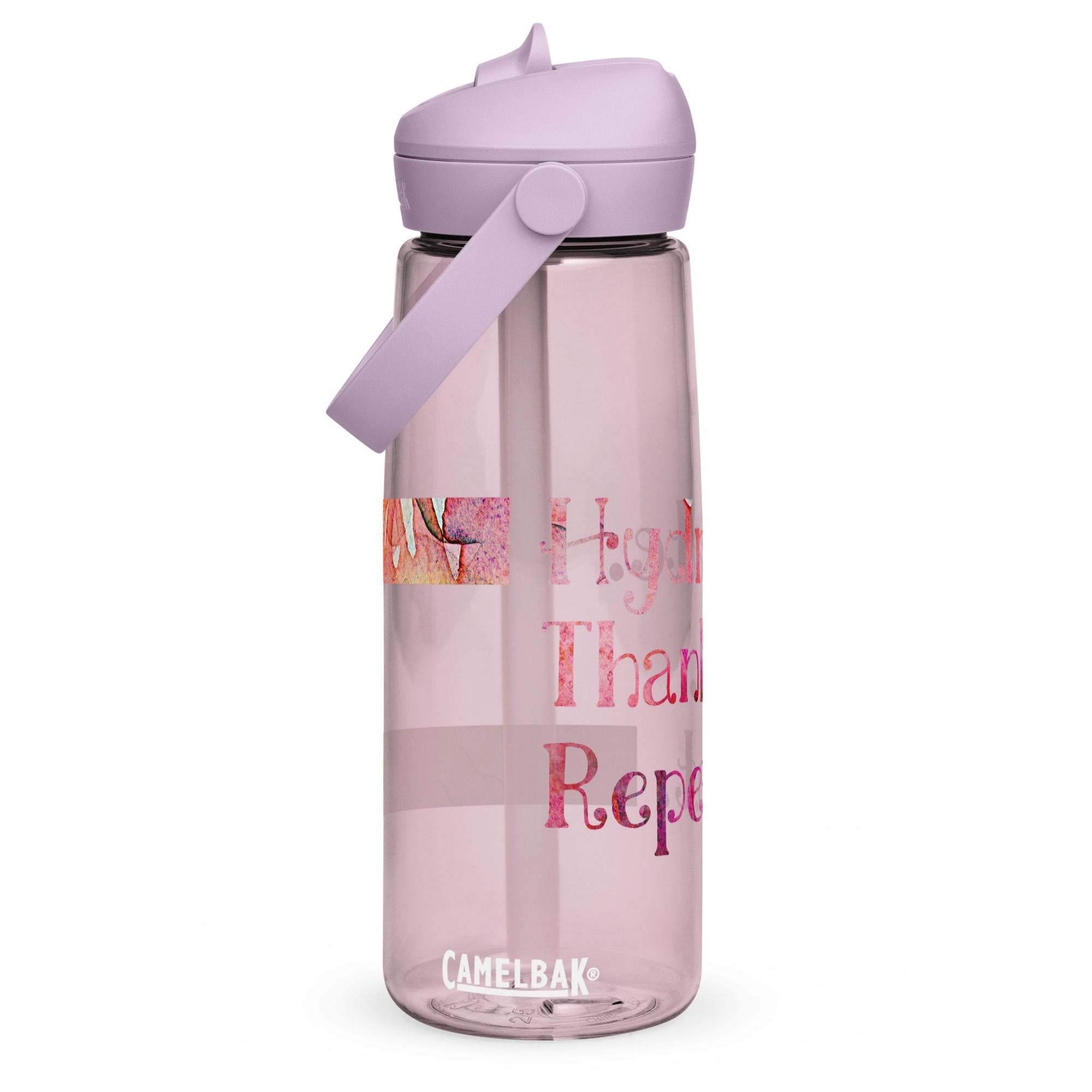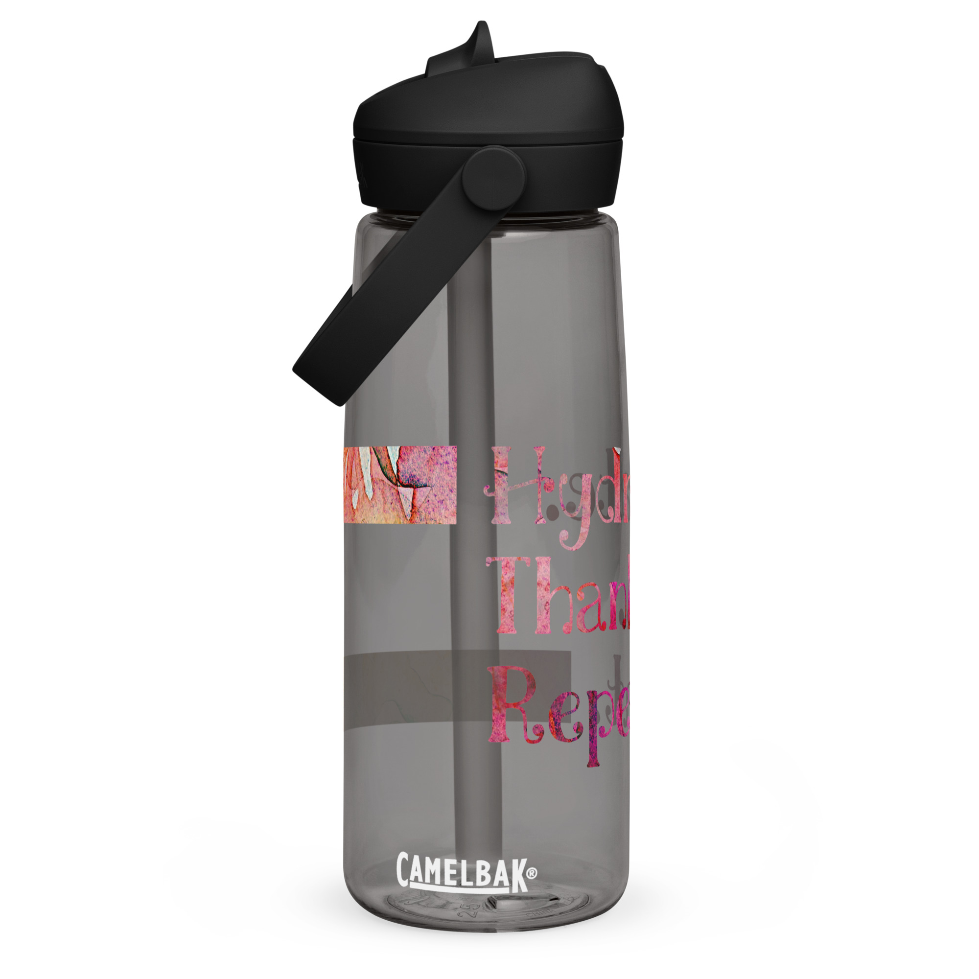 Stay refreshed with our water bottle made from 50% recycled plastic. This flip straw bottle resists stains, shattering, and odors and will keep your drink safe thanks to its leak-proof cover and its spill-proof bite valve. The pivoting handle makes the bottle easy to carry for any activity, from sports to outdoor adventures. Design and order one for yourself, or start selling it today!. BPA-free Tritan® Renew 50% recycled material. 25 oz. (739 ml). Dimensions: 10″ × 3″ (25. 4 × 7. 62 cm). Stain, shatter, and odor-resistant. Leak-proof mouthpiece cover and spill-proof bite valve. Pivoting carry handle. Blank product sourced from China. CamelBak® and Thrive® are trademarks of CamelBak Products, LLC, registered in the U. S. and other countries and regions. This product is made on demand. No minimums.