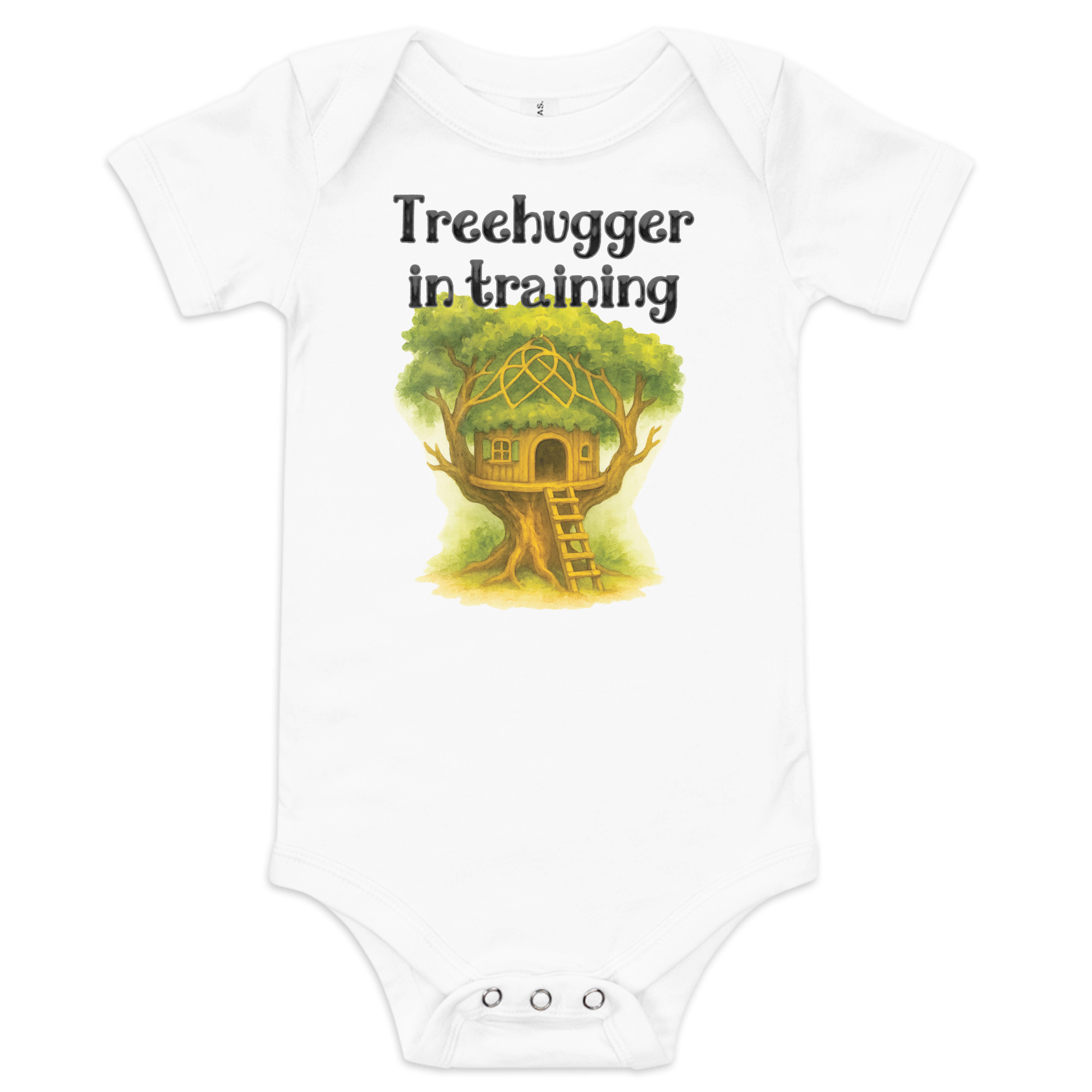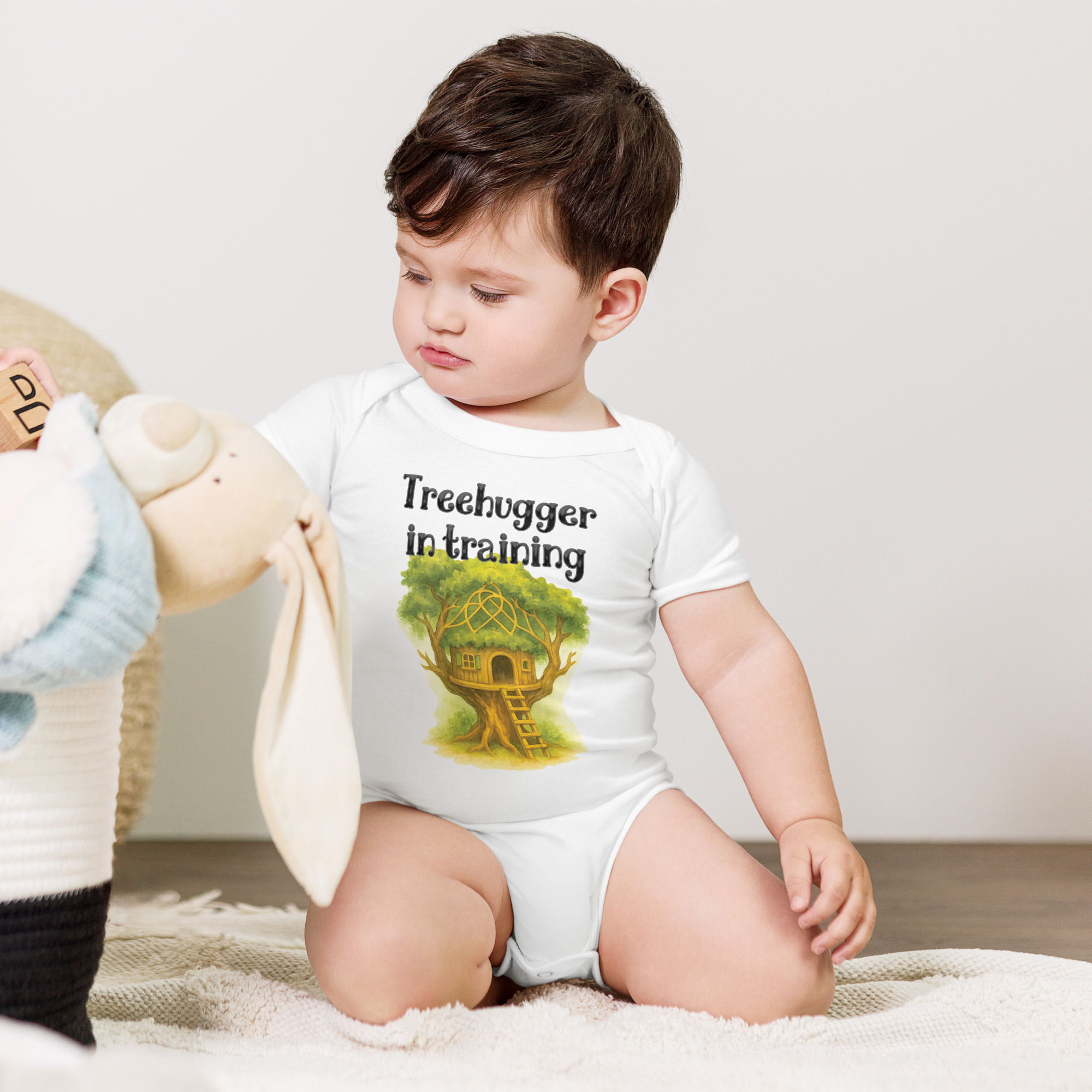 Soft for busy days, statement for greener tomorrows. This Bella + Canvas 100B baby one-piece pairs smooth Airlume jersey with the “Treehugger in Training” graphic—easy on skin and built for quick changes.
